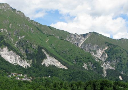 Il fiume Natisone stretto tra il monte Mia e il monte Matajur.