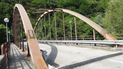 Questo ponte è stato travolto da una piena nel 1960. Ricostruito nel 1961 e formato da una struttura metallica ed è pavimentato con tavole di legno. |