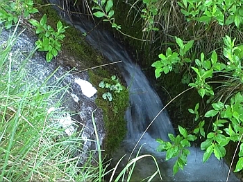 Naklanz, Arpit, Mine, Poiana. Questi sono i nomi delle sorgenti presenti in questi luoghi. Qui vediamo, proprio sul confine, la passerella che porta, alla zona di captazione del Poiana. |