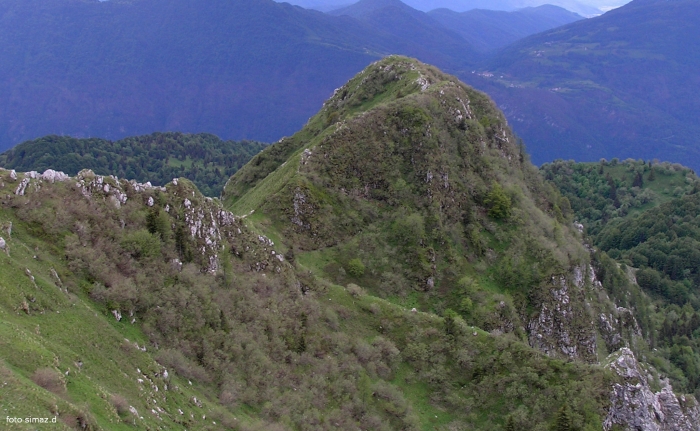 Il Lipnik (foto sotto) mt.1.863 sulla destra; sulla sinistra la Sr. Spica mt.1819 e, dietro questa, poco visibile, il Hudi Vrh mt. 1.808
